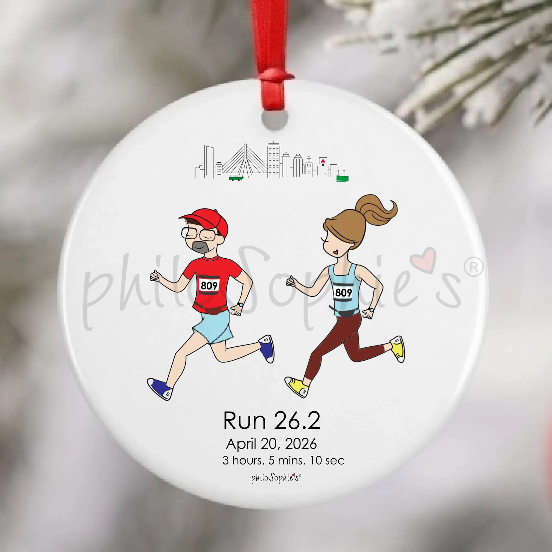 Personalized Porcelain Ornament - Running Couple- Cities
