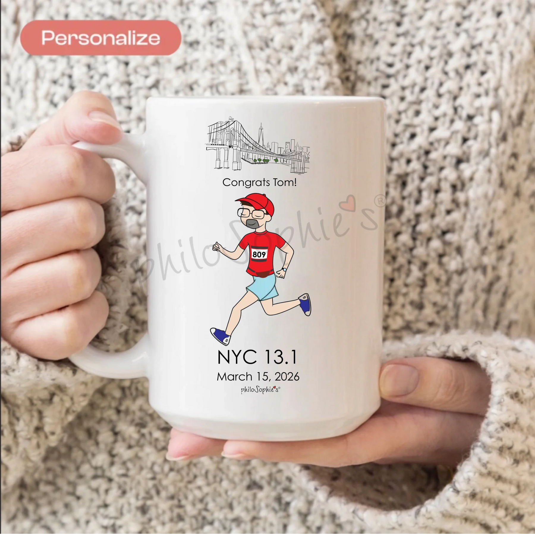 Personalized Ceramic Mug - Male Half Marathon NYC