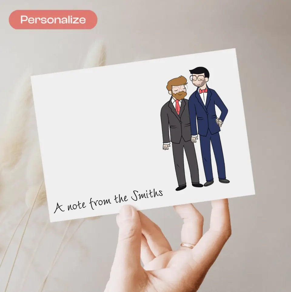 These personalized flat note cards provide a whimsical style to your correspondence. Size 5.5" x 4.25". white envelopes included.