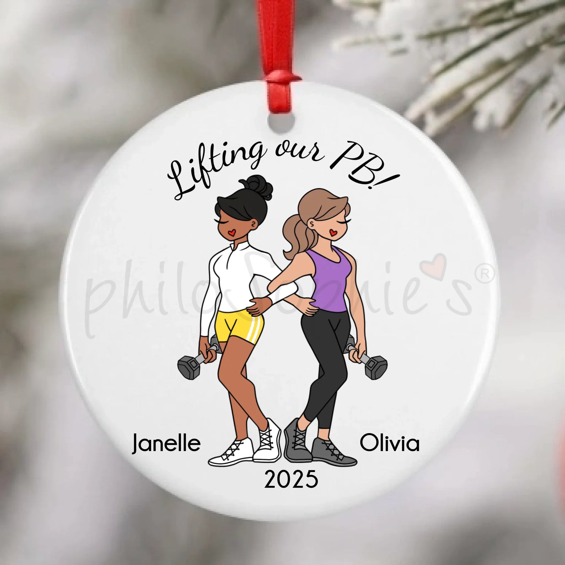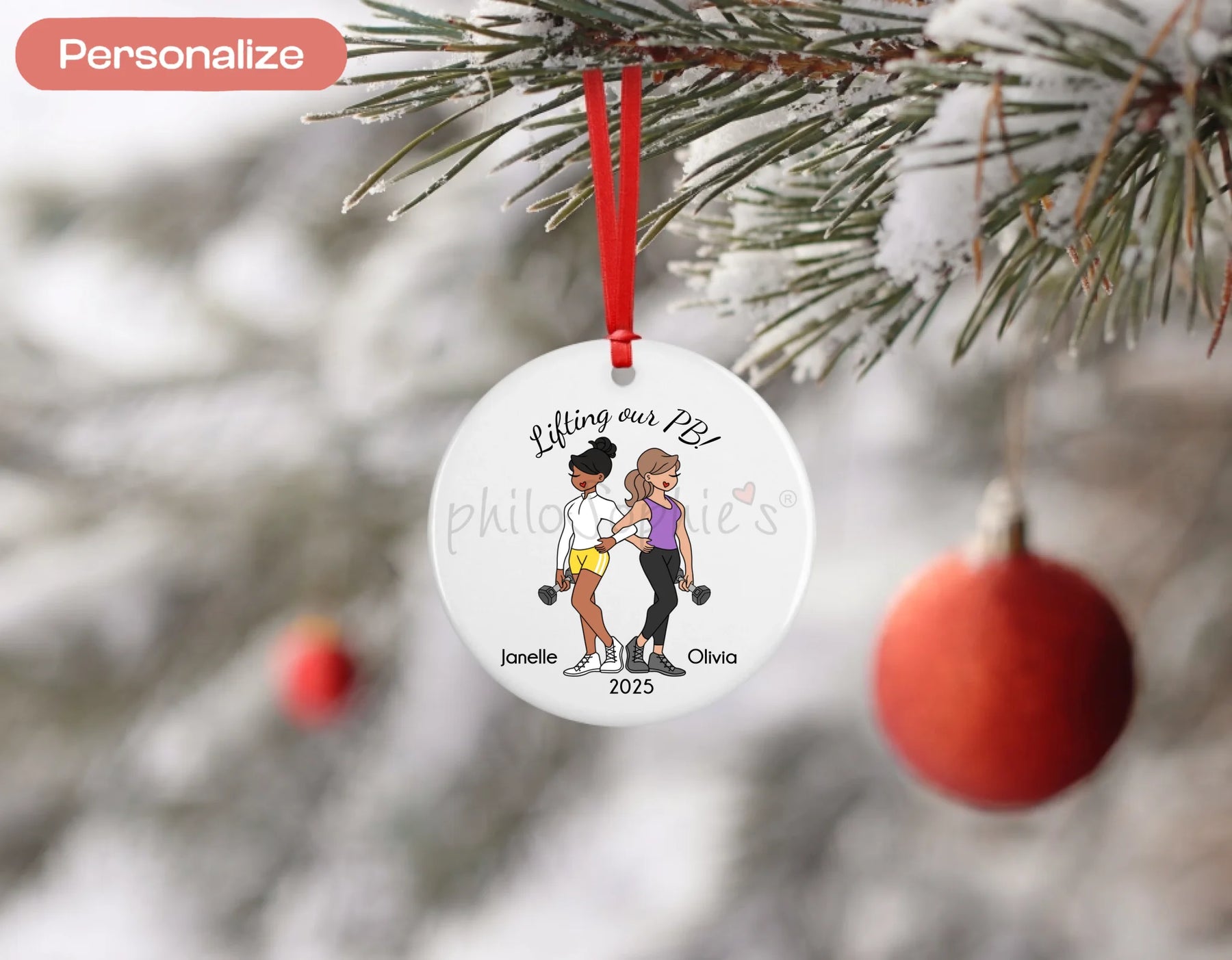 Personalized Porcelain Ornament - Weight Lifters, Fitness Friends