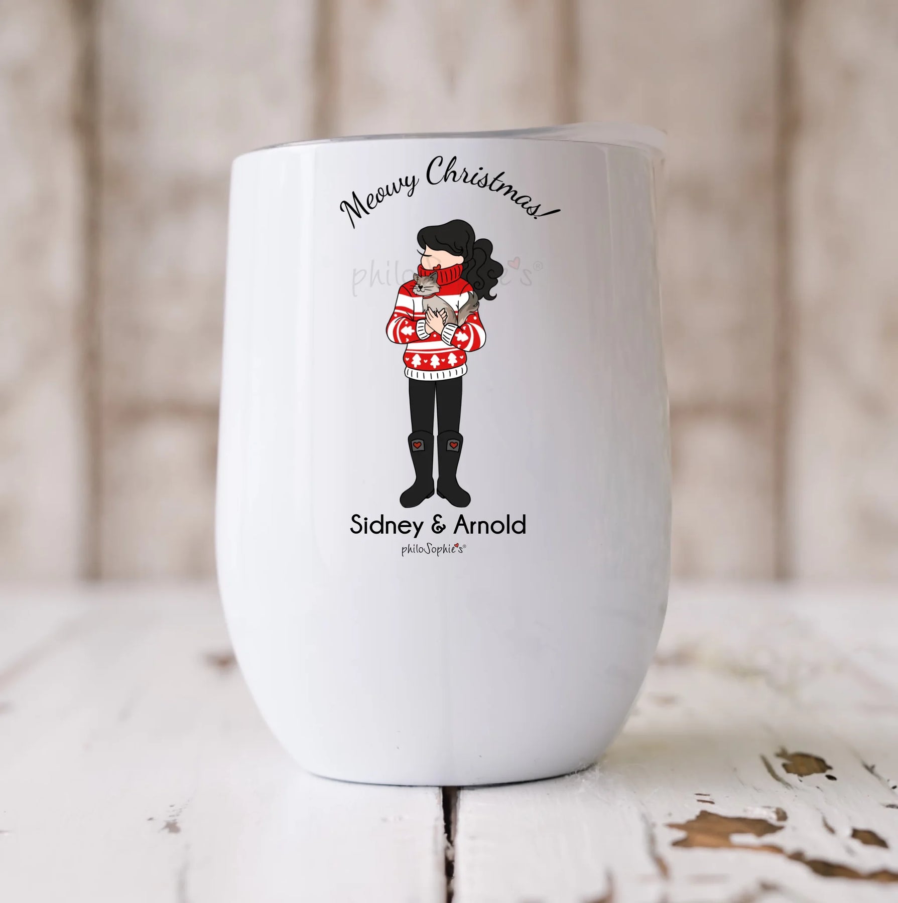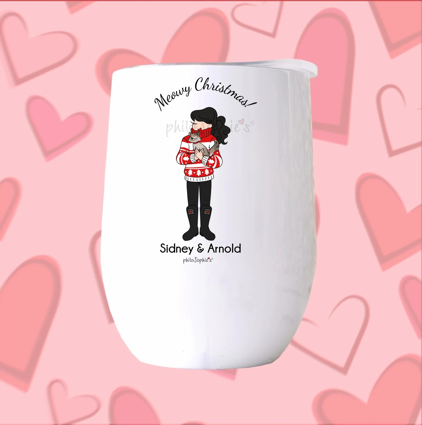 12 oz Stainless Steel Stemless Wine Tumbler, Illustration printed on one side of tumbler.