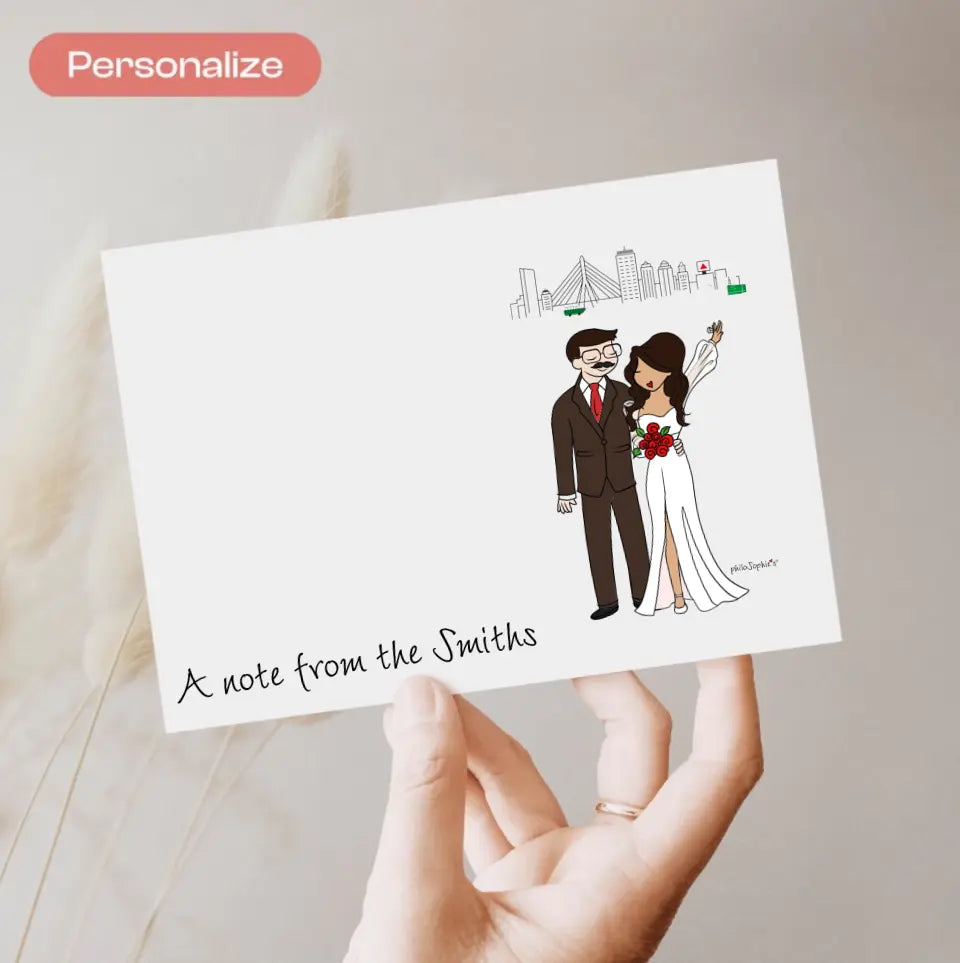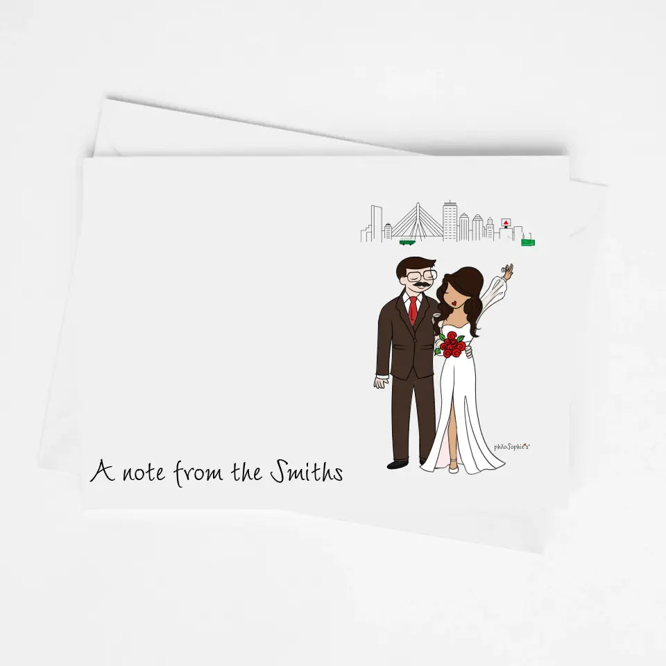 These personalized flat note cards provide a whimsical style to your correspondence. Size 5.5" x 4.25". white envelopes included.