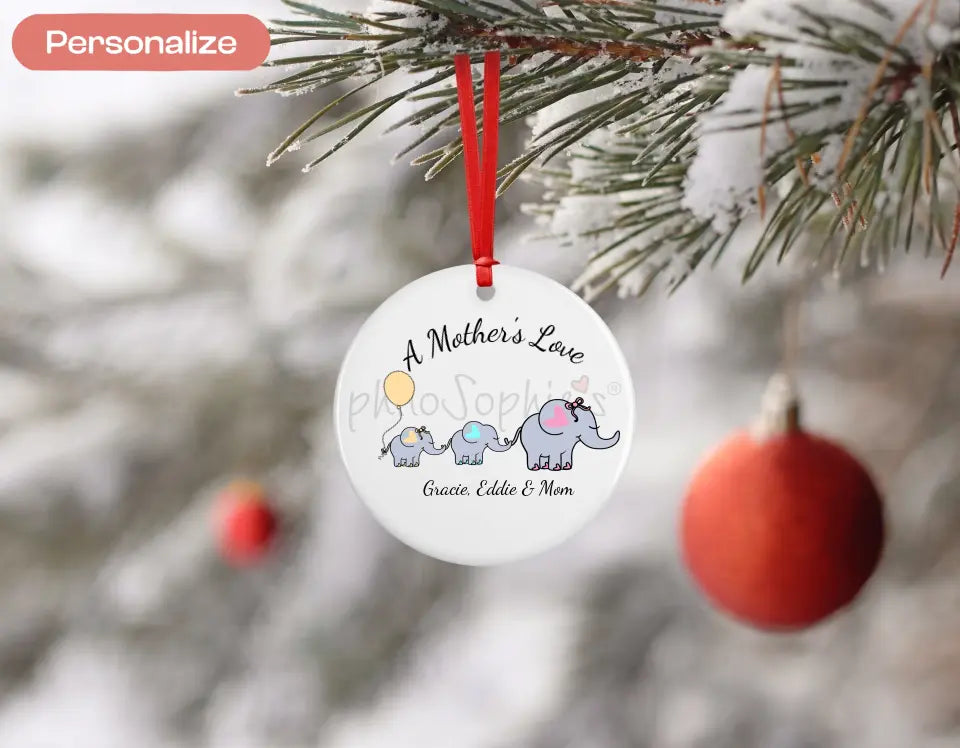 Mother & Baby Elephant - Personalized Ornament