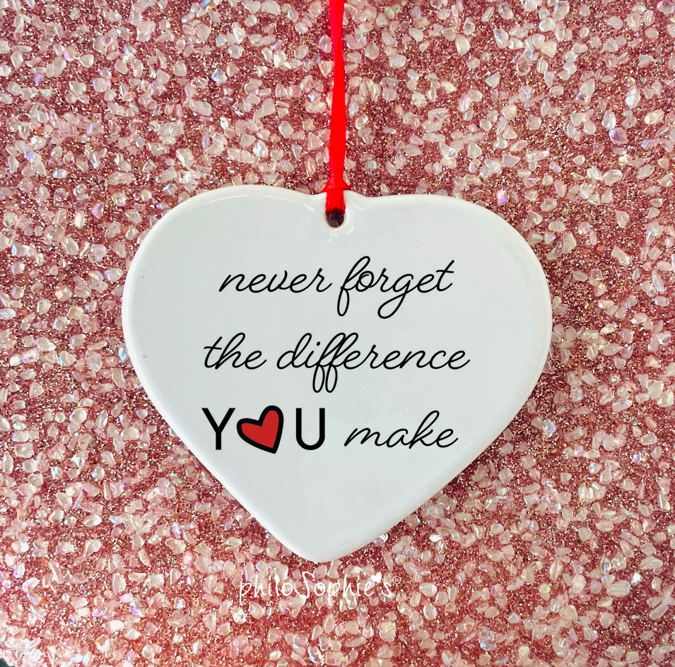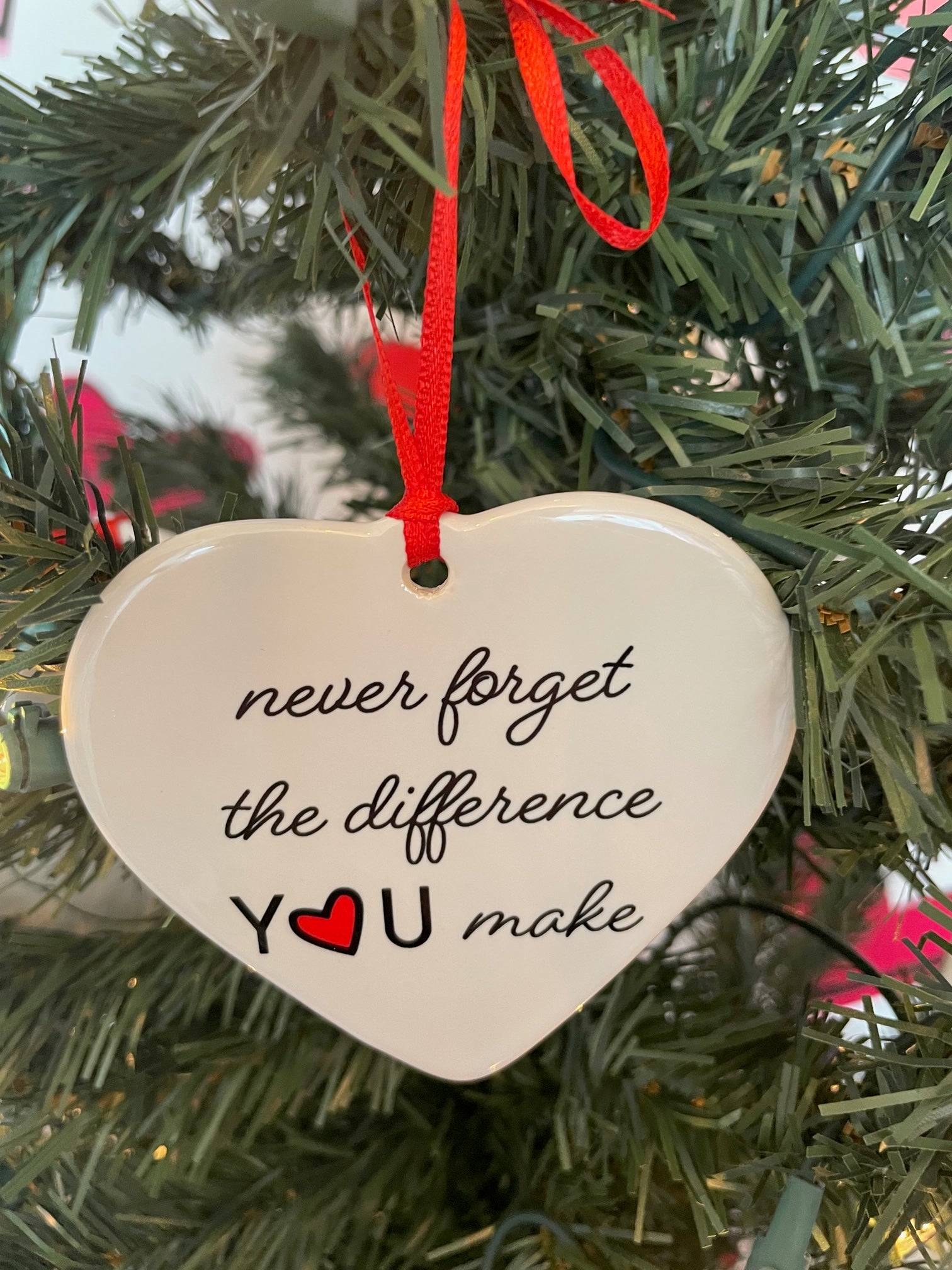 Never Forget the Difference You Make Heart Porcelain Ornament