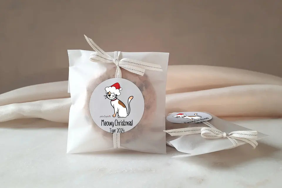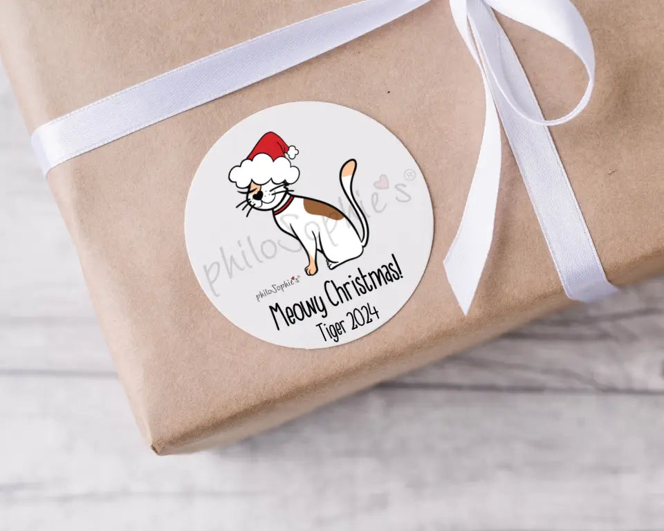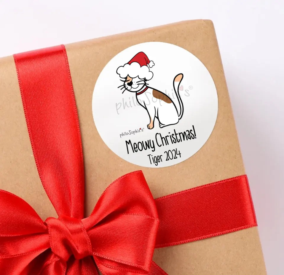 Personalize Christmas Cats Sticker Tags ~ 2.5in Round Sticker philosophie❤️s