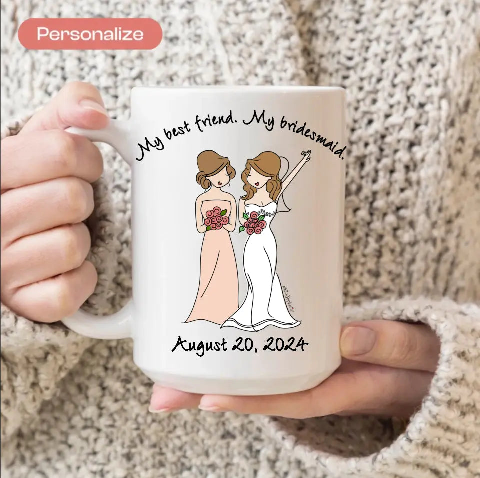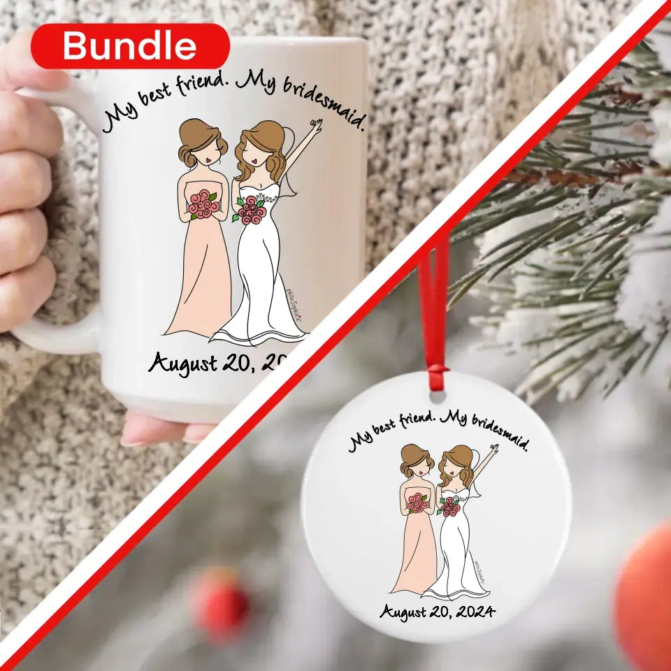 Gift Bundle - Bridal Party, Bridesmaid Ceramic Mug and Ornament