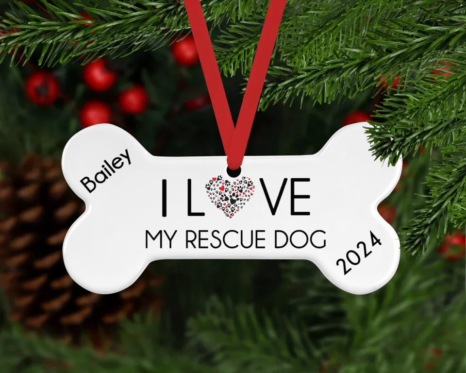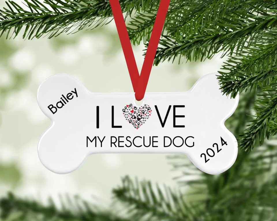 Personalized I Love My Rescue Dog Porcelain Ornament