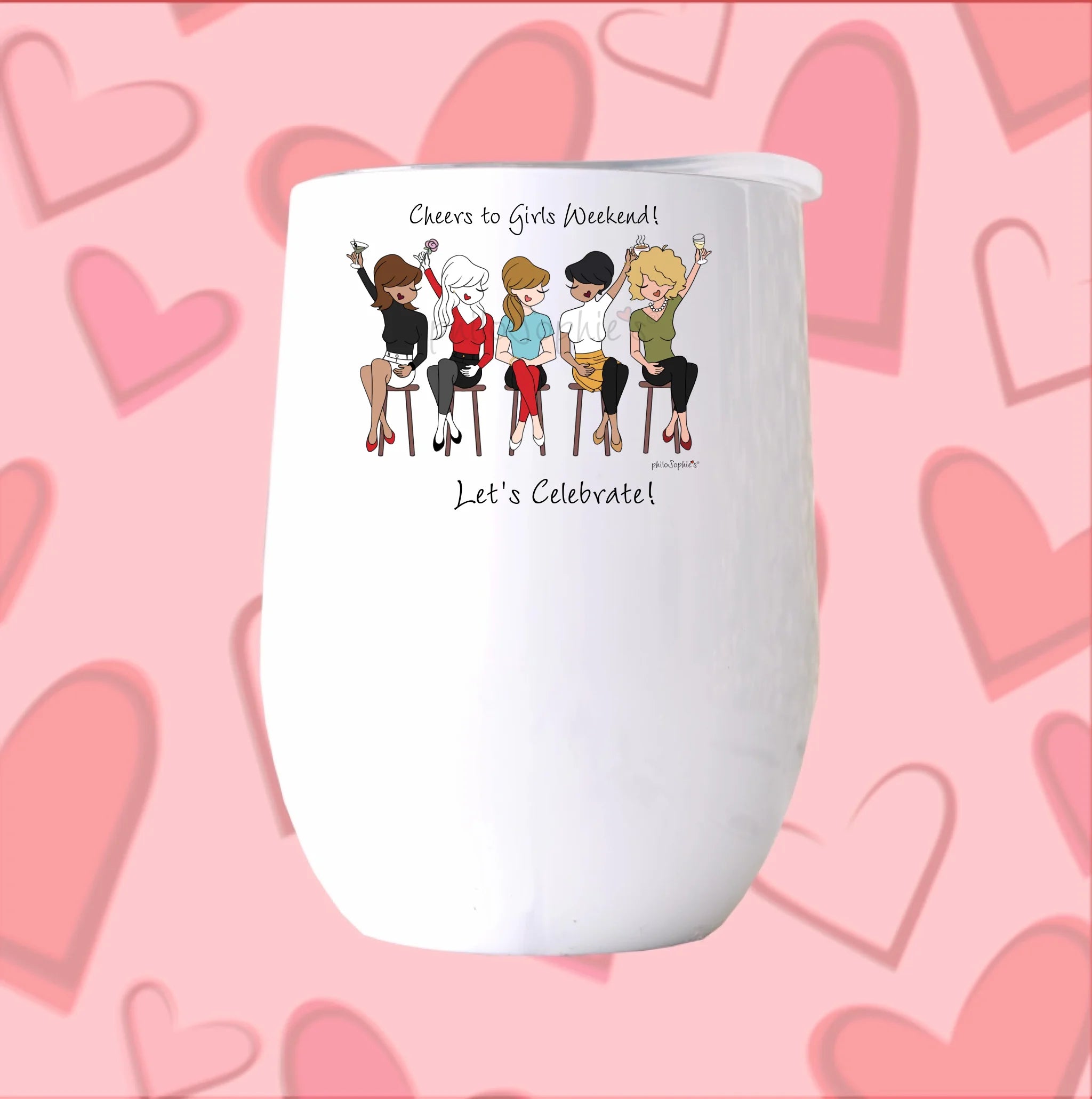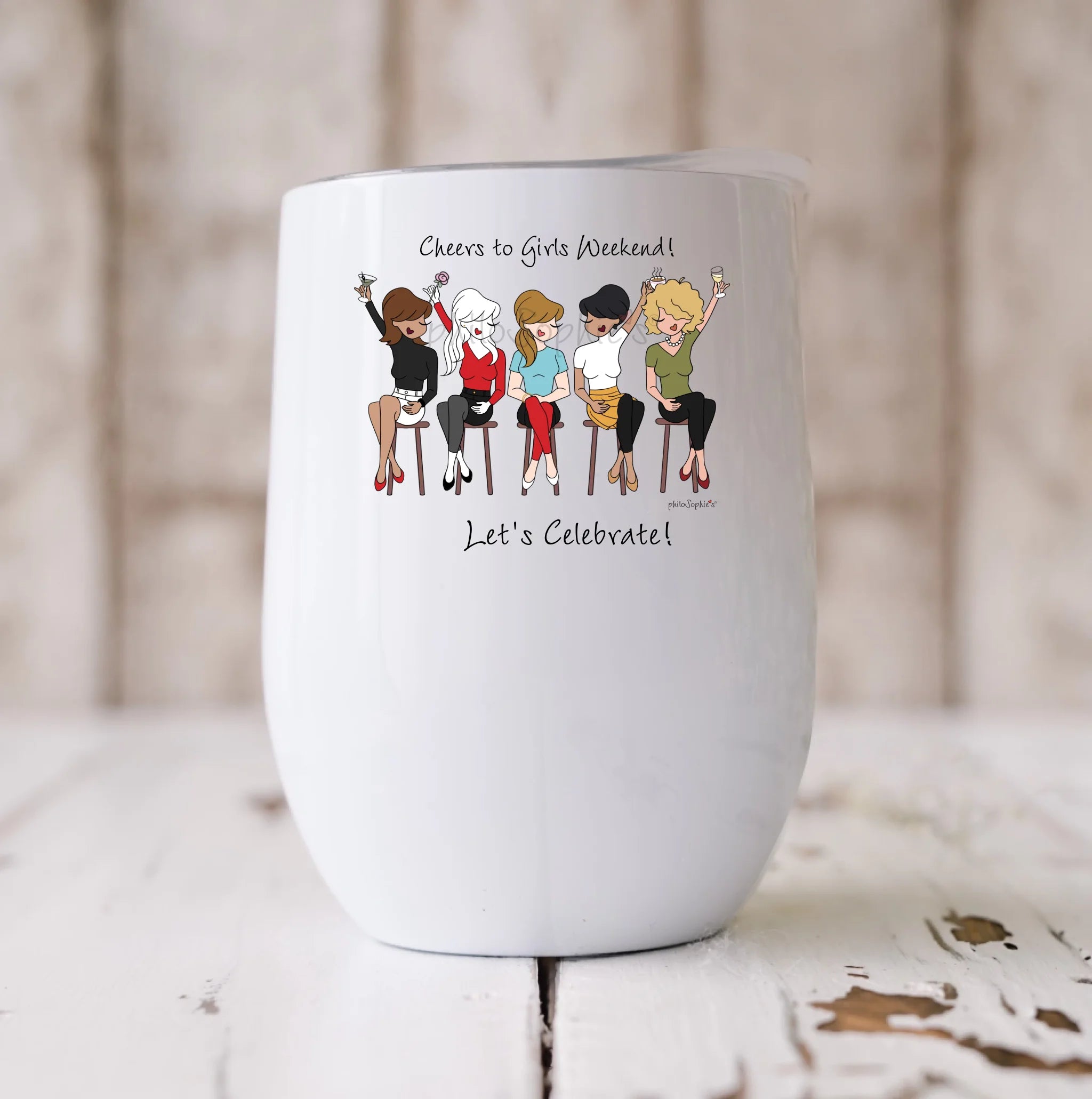 12 oz Stainless Steel Stemless Wine Tumbler, Illustration printed on one side of tumbler.