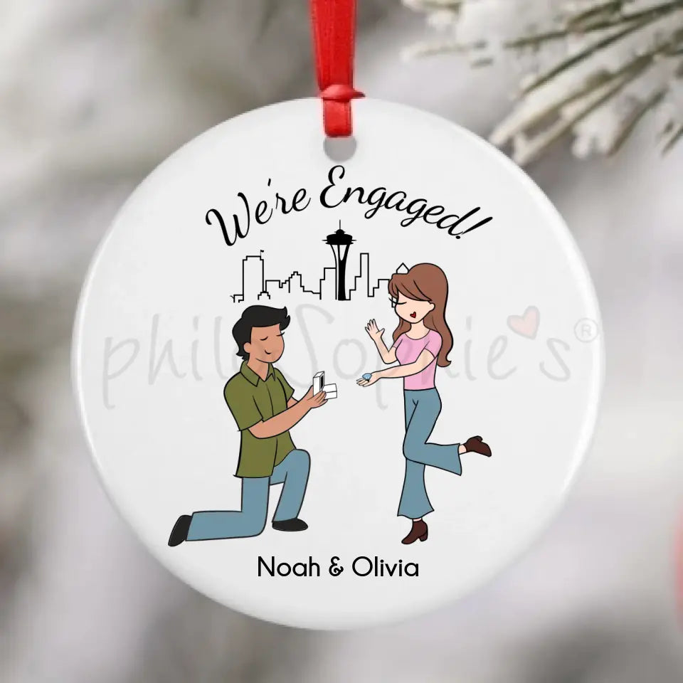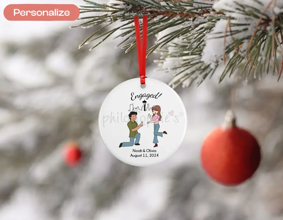 Personalized Porcelain Ornament | City, Seattle Engagement