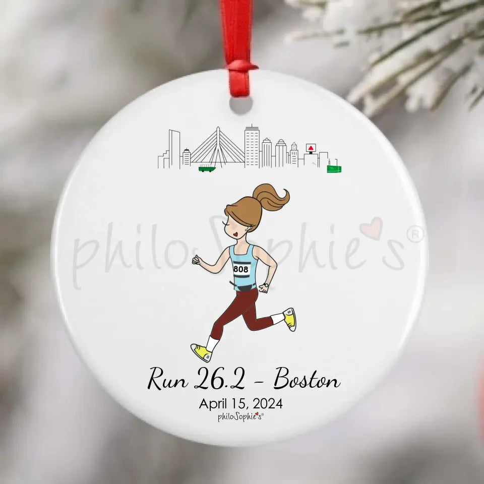 Personalized Porcelain Ornament | Female Runner Select City Marathon